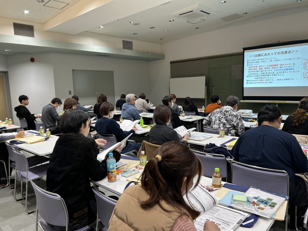 学科長から、資格や受験勉強、レポートやスクーリングなど入学後の学習の進め方の説明があり、